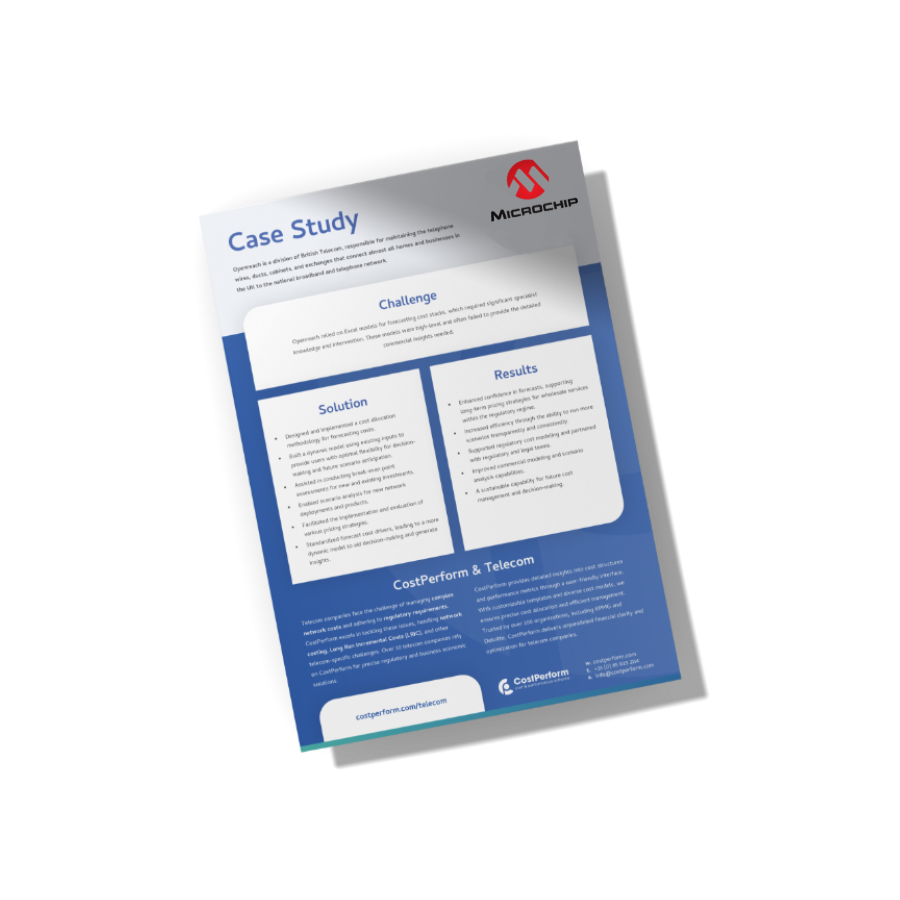 In this case study, you can expect to learn how Microchip Technology Inc. utilized CostPerform to enhance its cost allocation, financial transparency, and decision-making processes in global manufacturing. You’ll gain insights into how the company tackled challenges like managing large volumes of data, optimizing production costs, and integrating data-driven tools like Tableau for improved reporting and performance comparisons across locations. Additionally, it showcases the benefits of dynamic cost modeling for profitability analysis and resource management in a complex, multi-location manufacturing environment.
